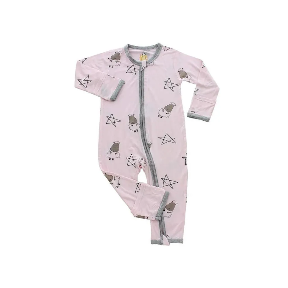 Baa Baa Sheepz Romper Zip Big Star & Sheepz Pink with Grey Border