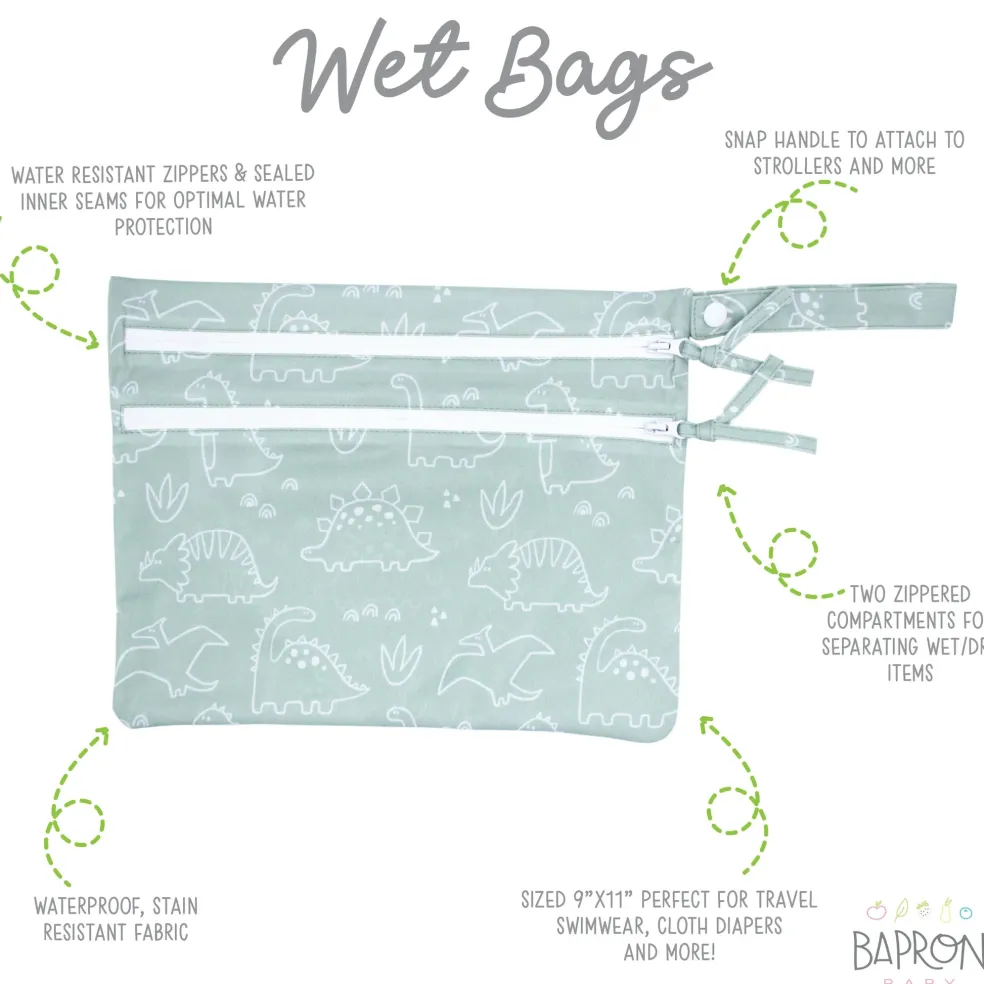 Our newest addition to the BapronBaby product line is a super soft zippered pouch with two compartments for separated wet/dry storage. The Waterproof Wet Bag is made with love to keep wet stuff wet, and dry stuff dry!