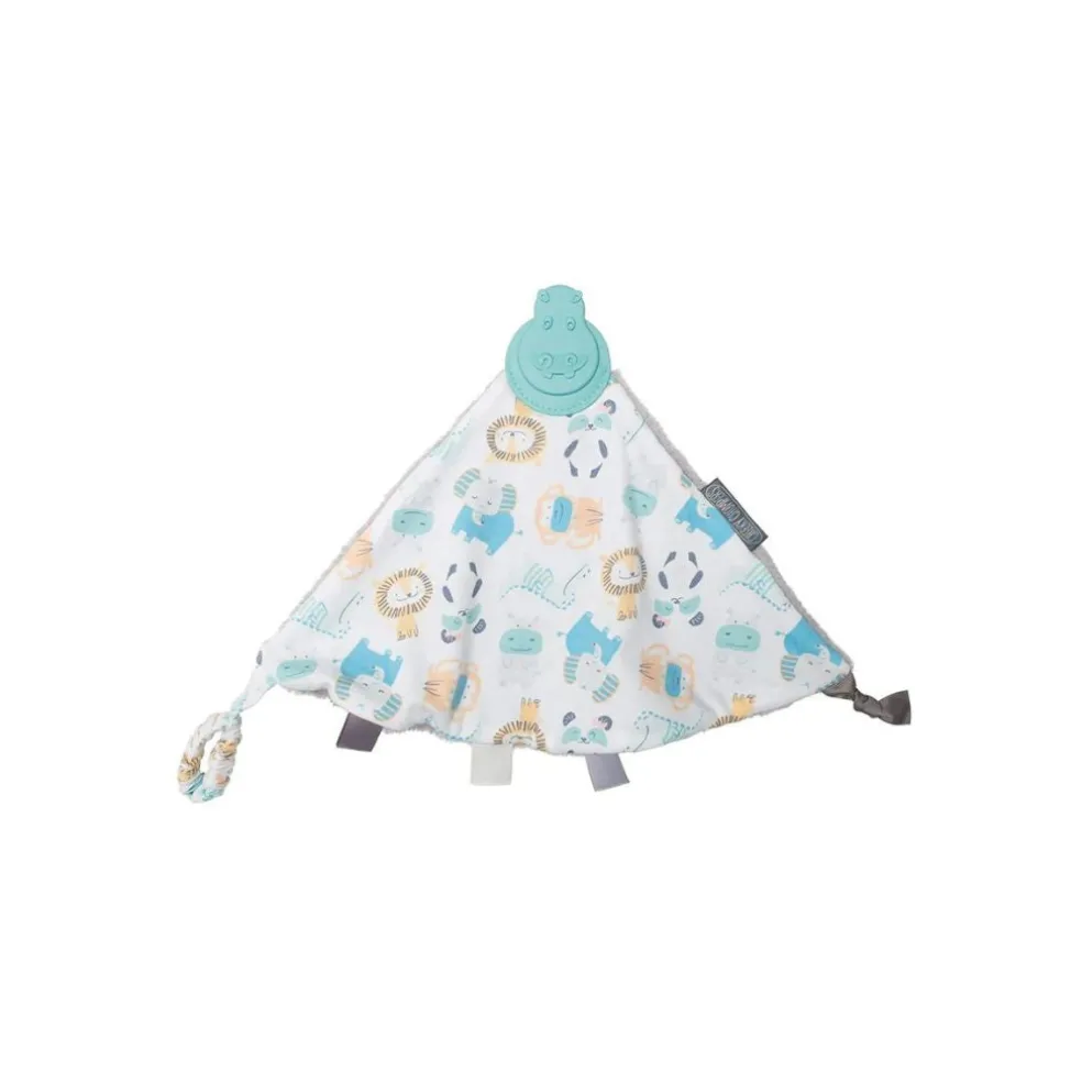 The attached signature hippo teether is designed to massage and soothe those tender little gums and is 100% safe to chew.