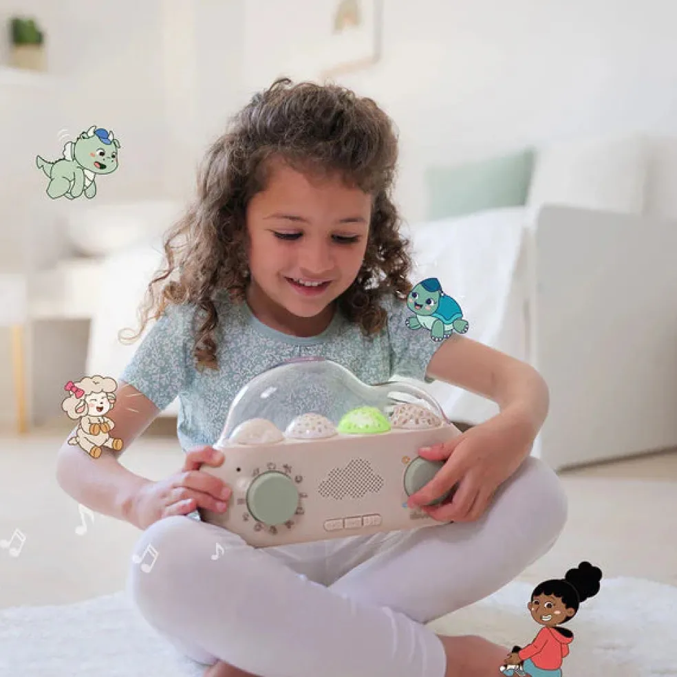 CloudBox™ narrates 36 fun stories based around 9 characters with very different personalities. With enchanting universes to explore – Ocean, Forest, Space, and Village – CloudBox™ helps soothe babies and immerses children into magical worlds that help develop their imagination.