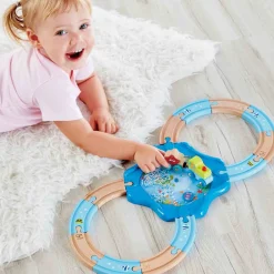 Take a journey to the bottom of the sea with this “underwater” railway! Make the sea creatures “dance” by driving the train over the crossing.