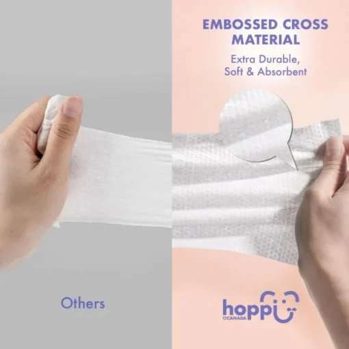 Hoppi⢠Baby Antibacterial Wipes swiftly cleanses and protects surfaces against 99.9% of germs. It is alcohol-free and is safe to be used on skin, baby toys, and surrounding surfaces.