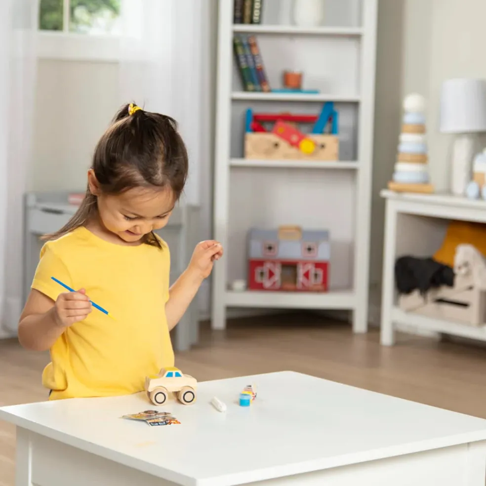 - Includes 4 pots of paint, paintbrush, and 27 stickers for decorating