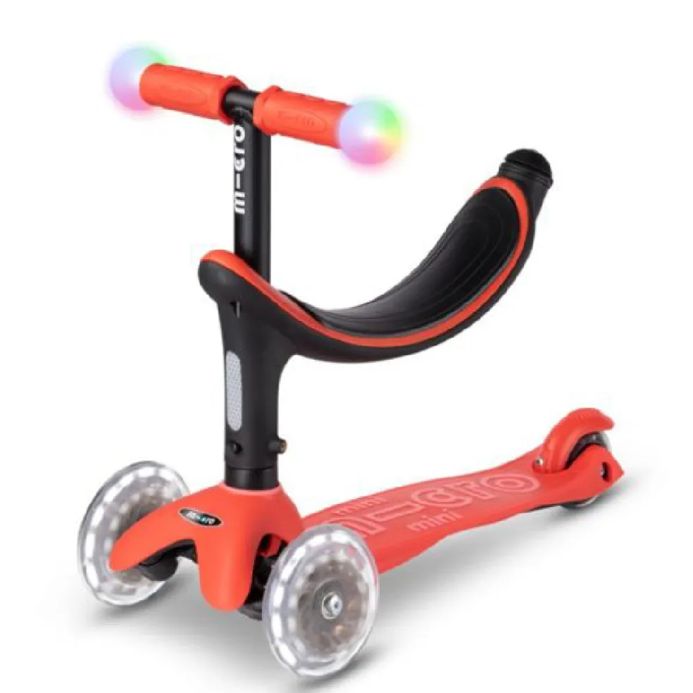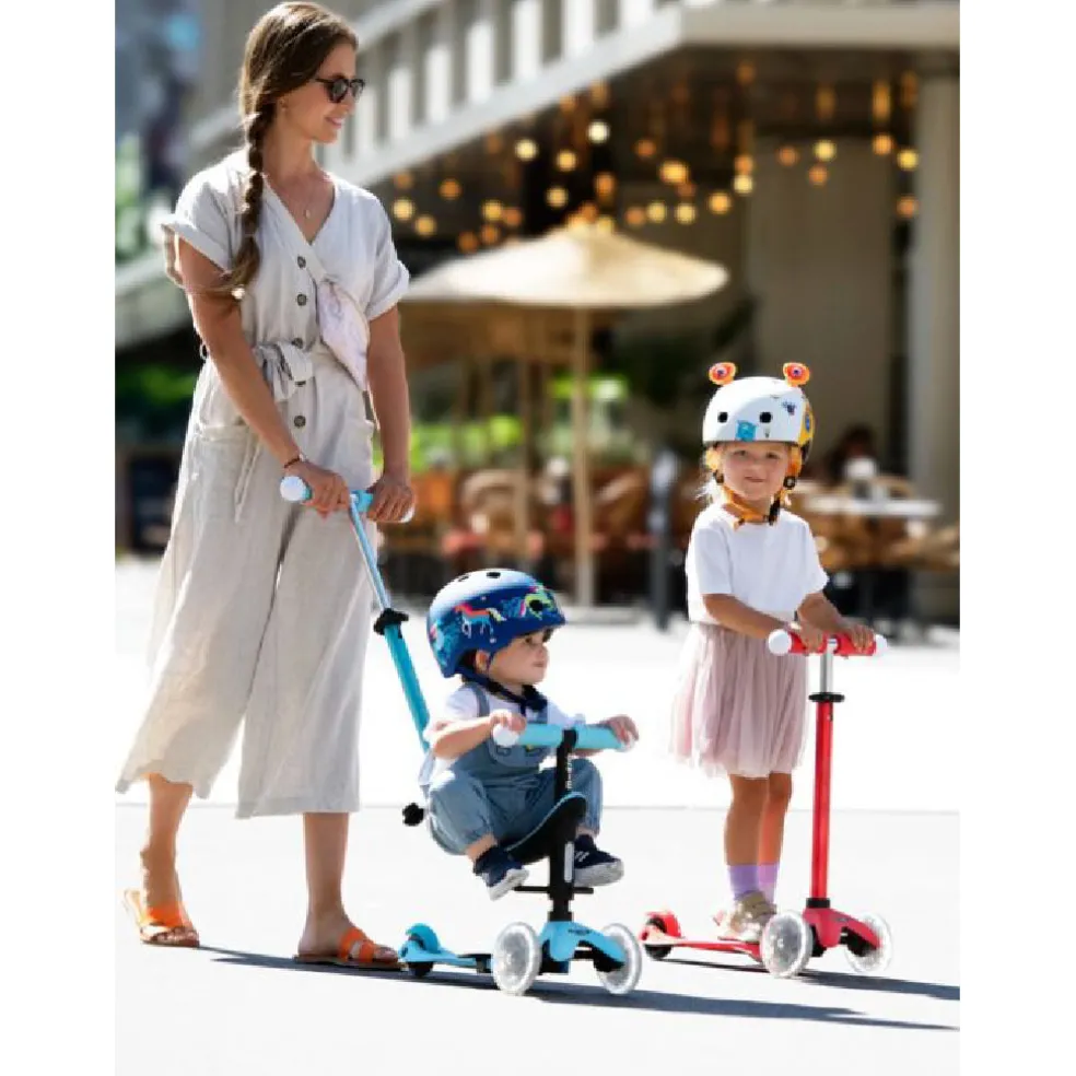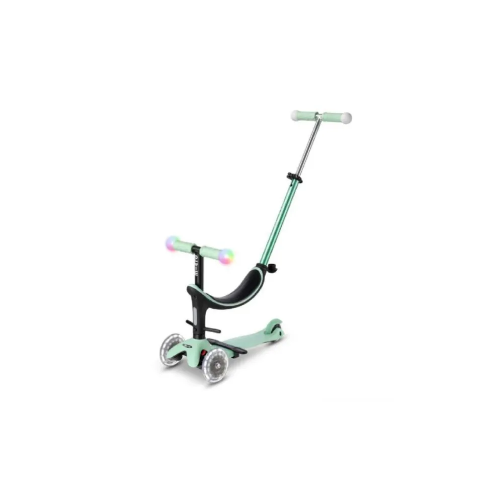 Micro Mini2Grow Deluxe Magic Scooter (LED on Wheels+ Handles) is an all-in-one scooter for the first years of life. It grows with your child and can be adapted into four stages with no tools required. Thanks to its multifunctionality, it can be used from the age of 12 months and will accompany your child until at least the age of six. It comes with multicoloured LED magic lightbulbs for safety and driving fun. The wheels are LED moon wheels for better visibility and the scooter’s lean-to-steer system promotes better balance and motor skills. The seat is ergonomic and is removable. The set comes with two footrests which are both removable too. The parent’s push-bar rotates by 90 degrees making it comfortable for both the rider and the parent.