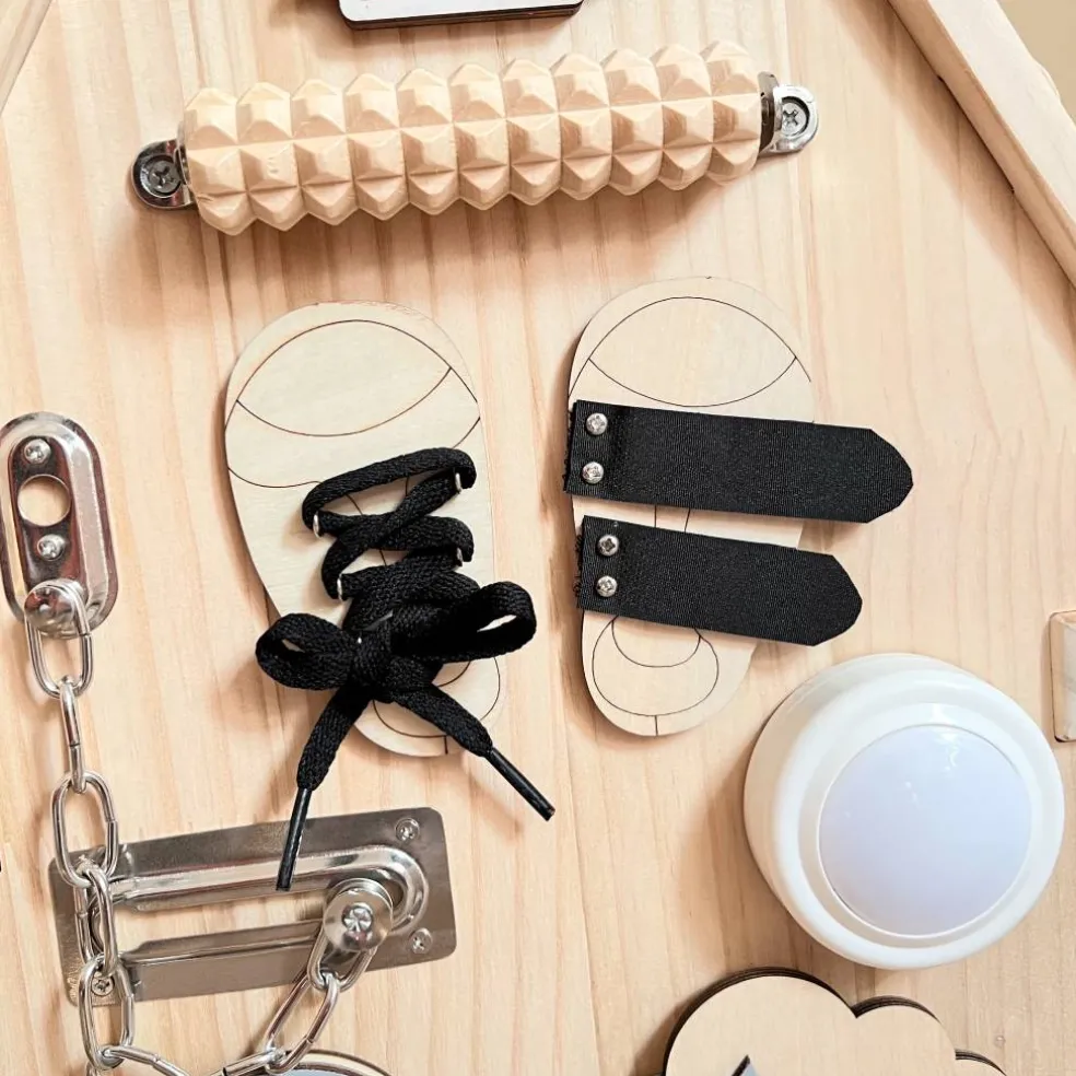 Our Busyhouse is the perfect toy to impart essential skills through Montessori Method. Through playing, the little one get exposed to: