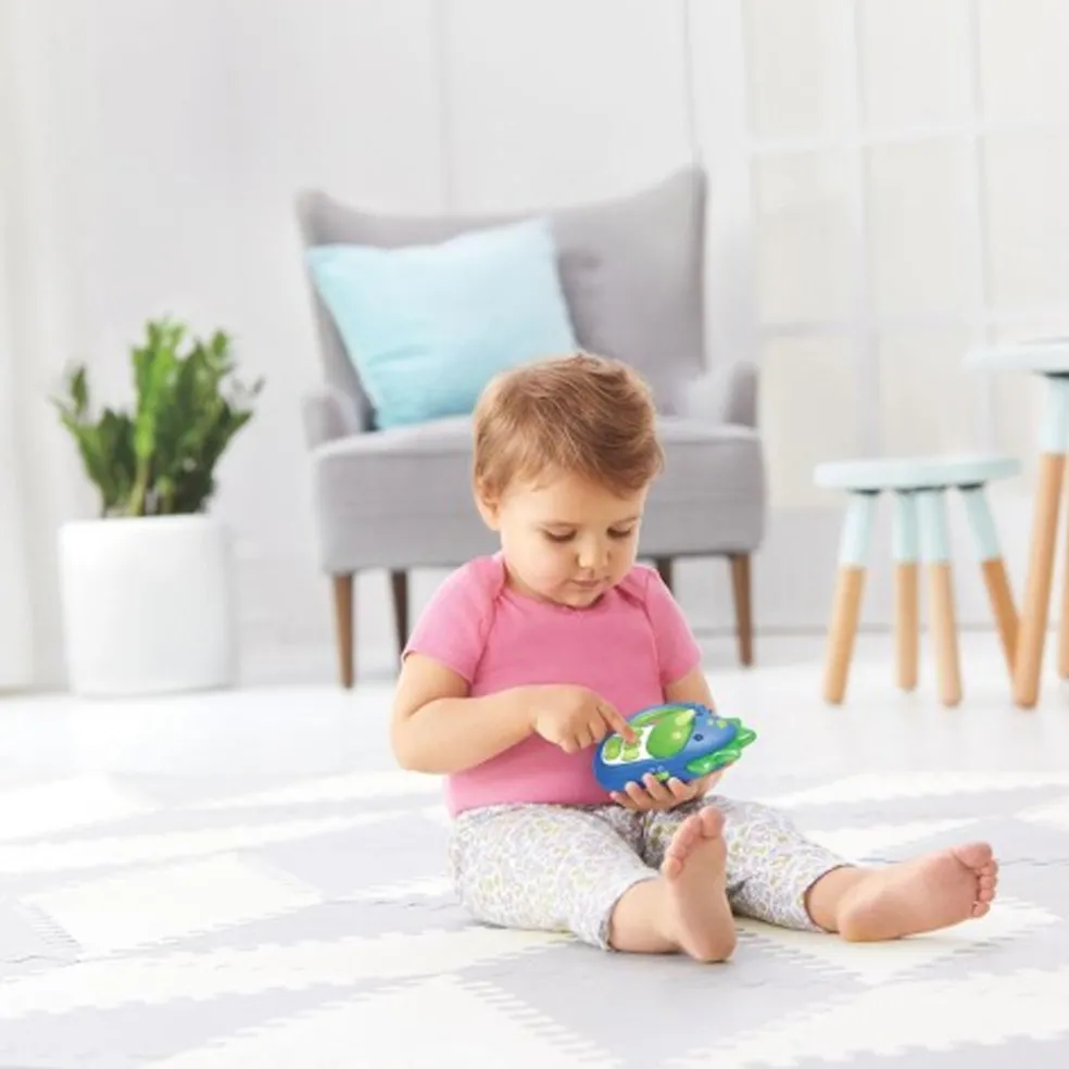 Talk about roarsome! This engaging dino phone keeps baby busy and happy with fun sounds, tunes and more. From the light-up horn to the easy-grip tail handle and push-buttons, your little one will love to explore this fierce friend.