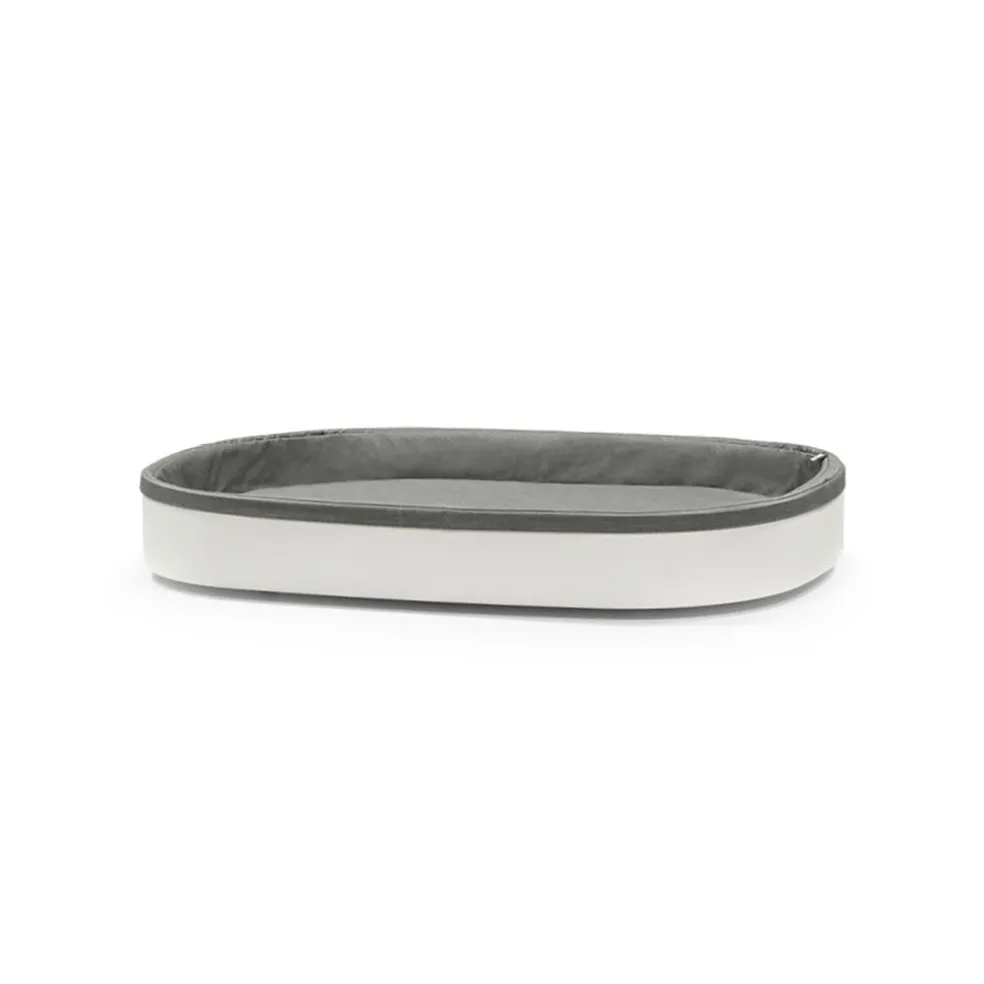 The changer can be safely used on top of the Stokke® Sleepi™ Dresser. Its protective sides and padded mattress offer a safe and comfortable environment for you to change your little one. The height of the Changer encourages eye-contact, and you can choose both sideway or parentfacing position depending on the base unit and room. It comes with a water repellent changing pad with protective sides for baby. This changing pad is soft to baby’s skin, removable and machine-washable.