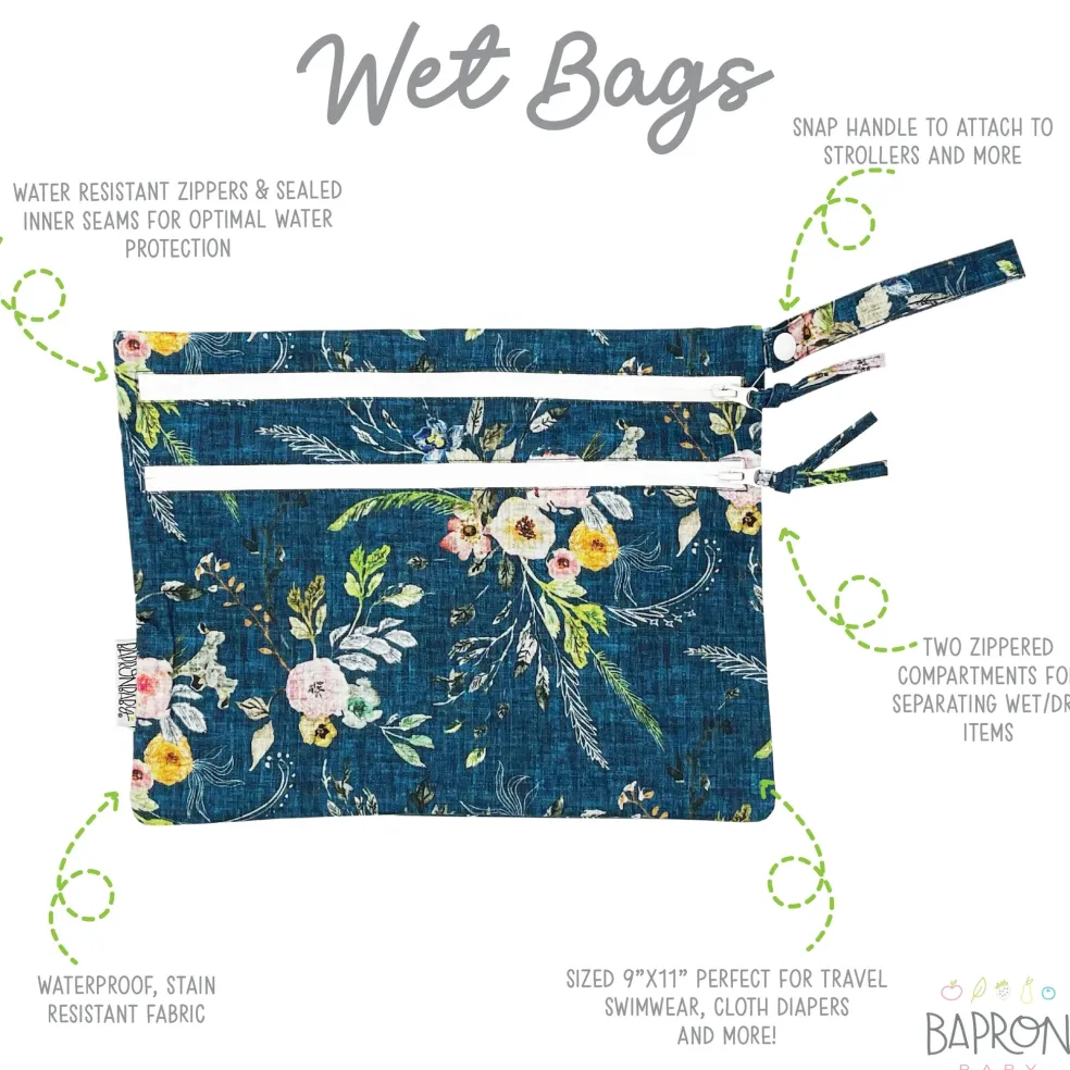 Our newest addition to the BapronBaby product line is a super soft zippered pouch with two compartments for separated wet/dry storage. The Waterproof Wet Bag is made with love to keep wet stuff wet, and dry stuff dry!