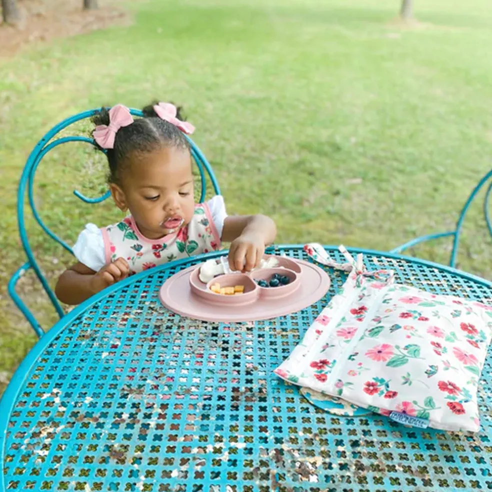 – Snap wristlet attaches onto a stroller handle or suitcase for snacks and baby necessities on-the-go