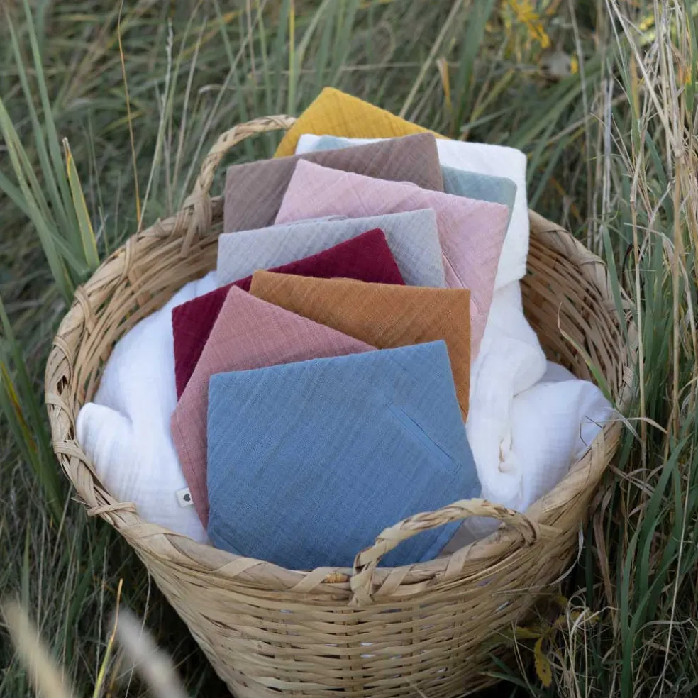 The BIBS Bandana bib is made of 100% GOTS certified organic muslin cotton. The dribble bib consists of multiple layers to ensure maximum absorbency and can be used to catch drool and regurgitation after feeding.