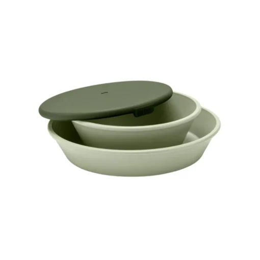 The Dinner Plate Set consists of a flat plate and a bowl with a complementary lid.