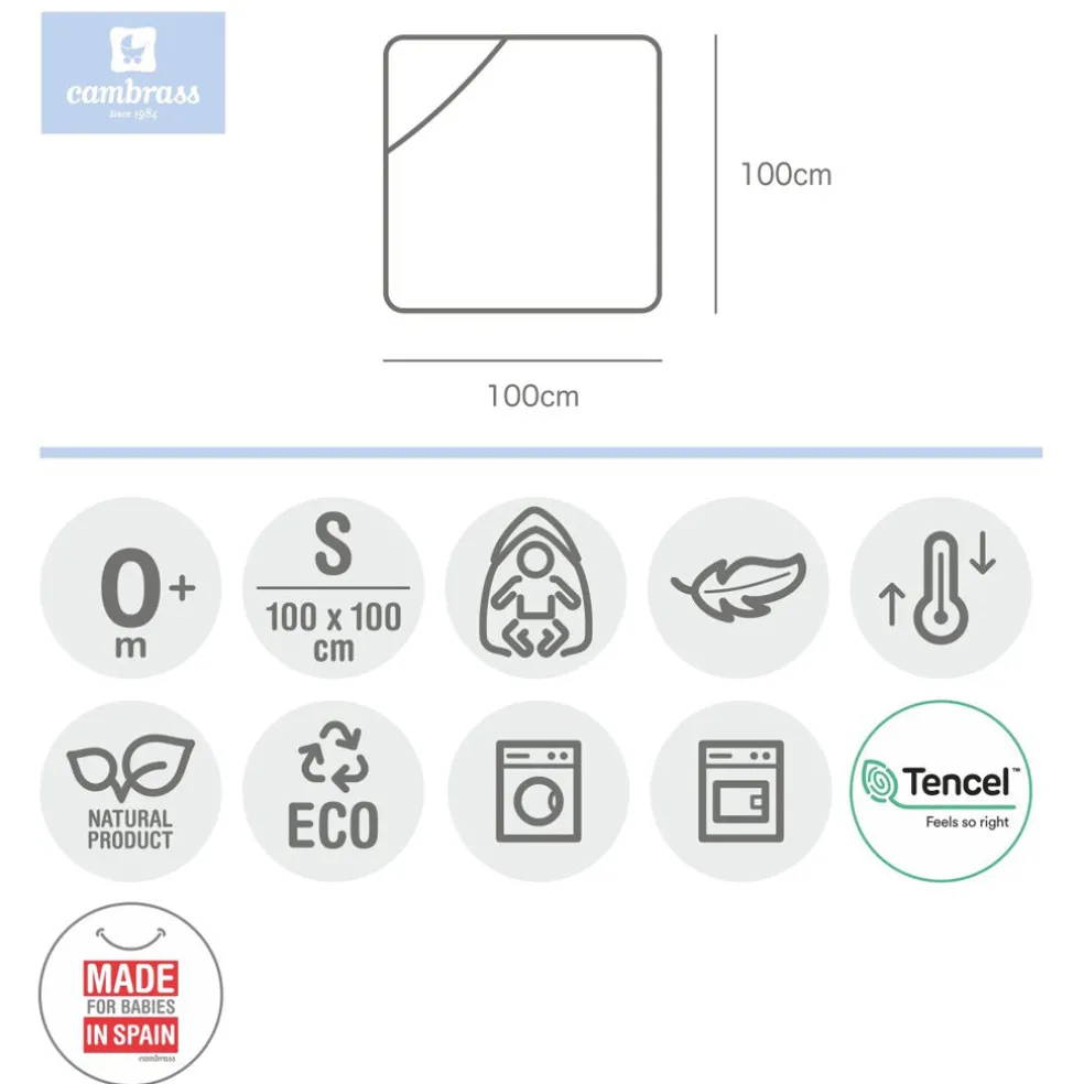 The bath cape, made with fibersTENCEL”!, is ideal for drying the baby after its bath. It is made with fibers TENCEL”!. Are botanic fibres that prevents allergies or irritations which could affect the baby s skin and is exceptionally soft, as it does not retain the lime from the water during washing. The hood, with inside terry lining, helps to keep the baby covered, maintaining its body heat at all times after its bath.