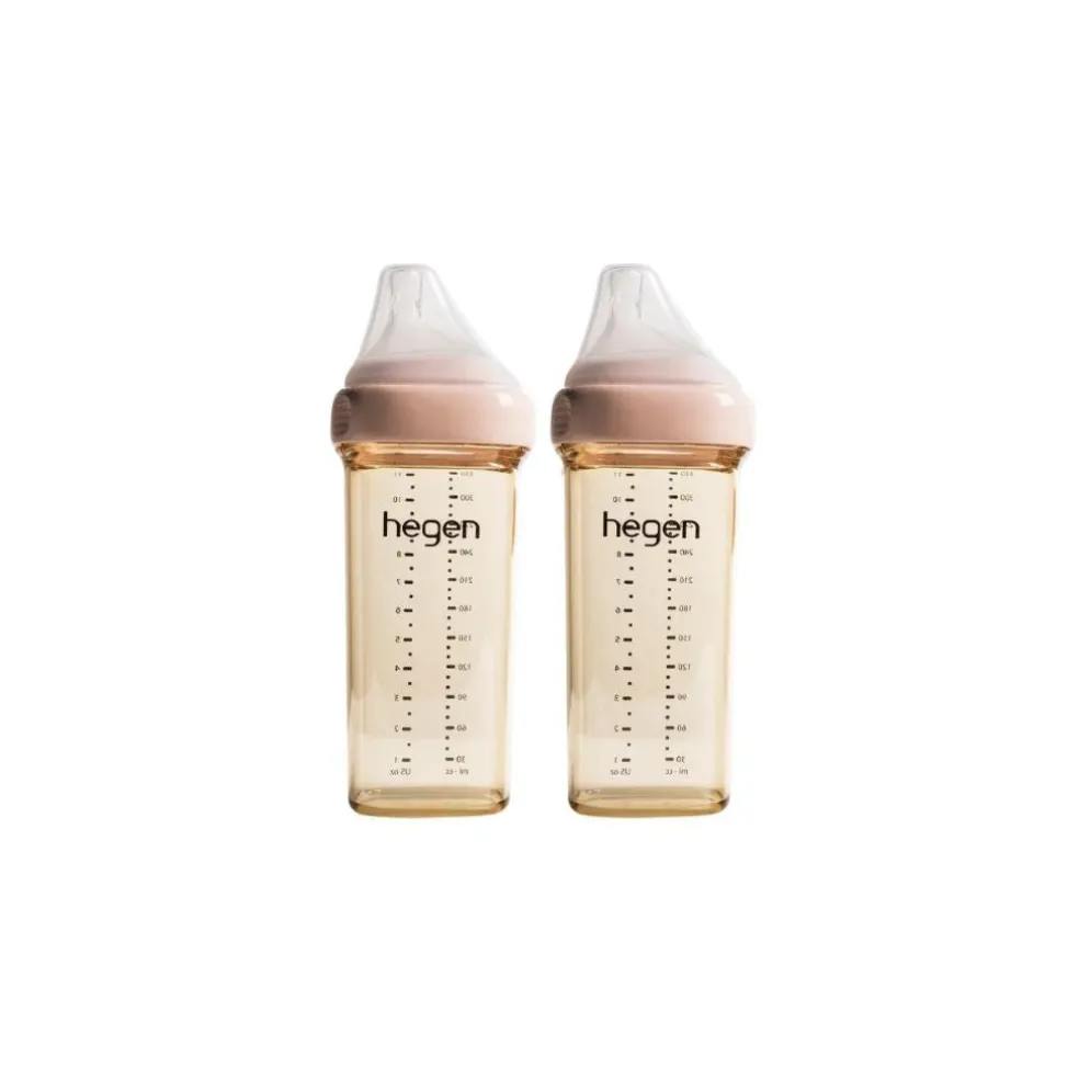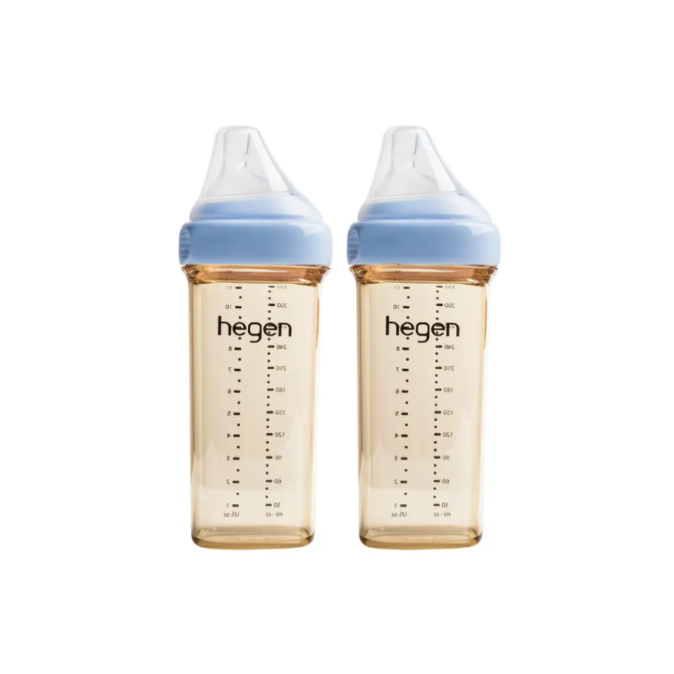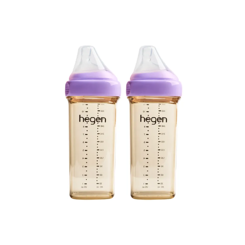 Hegen’s 330ml/11oz Feeding Bottle is suitable from the sixth month and it comes with a Fast Flow Teat that meets the need for a fast milk flow rate during weaning. This larger size is also suitable for converting into a drinking bottle for when baby grows older, simply by changing the teat and collar to a drinking spout!