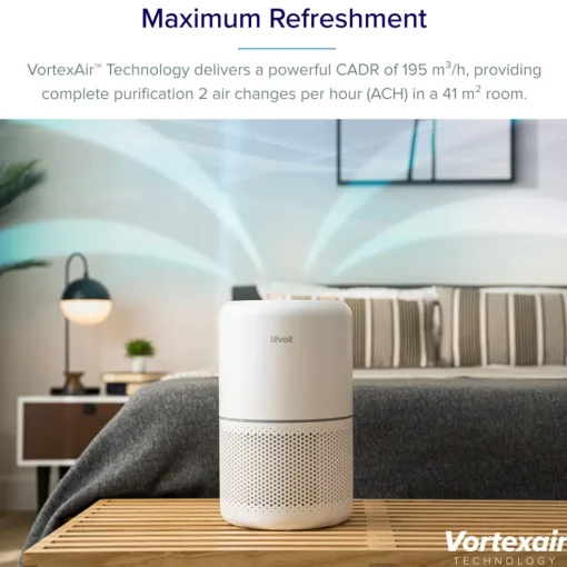 Breathe in clean air with every breath using the Levoit Smart True HEPA Air Purifier. Connect it to the free VeSync app for convenient smart functions, and set up voice control to refresh your space without leaving your seat.