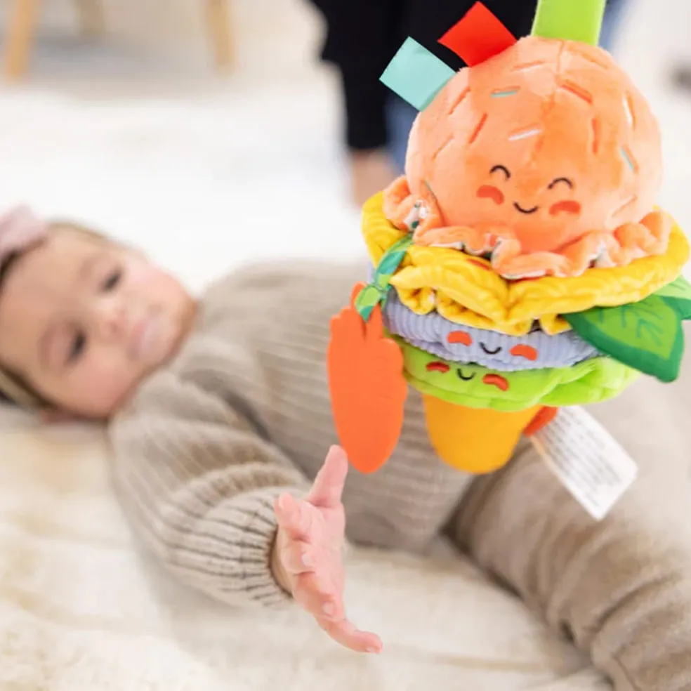 - Clip the soft, expandable, vibrating ice cream pull-toy infant toy to strollers, diaper bags, high chairs, car seats, and more to keep the fun close at hand; great for travel