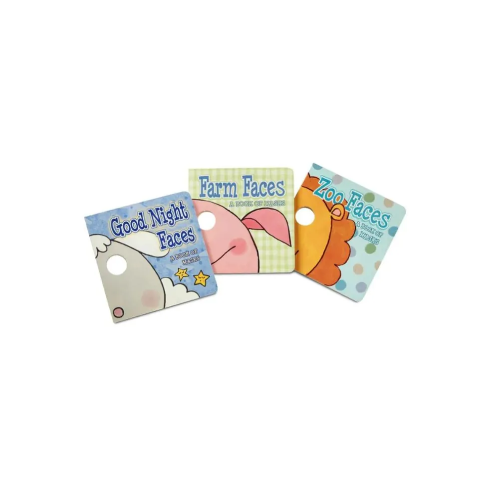 - Book bundle contains three 12-page board books: Farm Faces, Zoo Faces, and Good Night Faces
