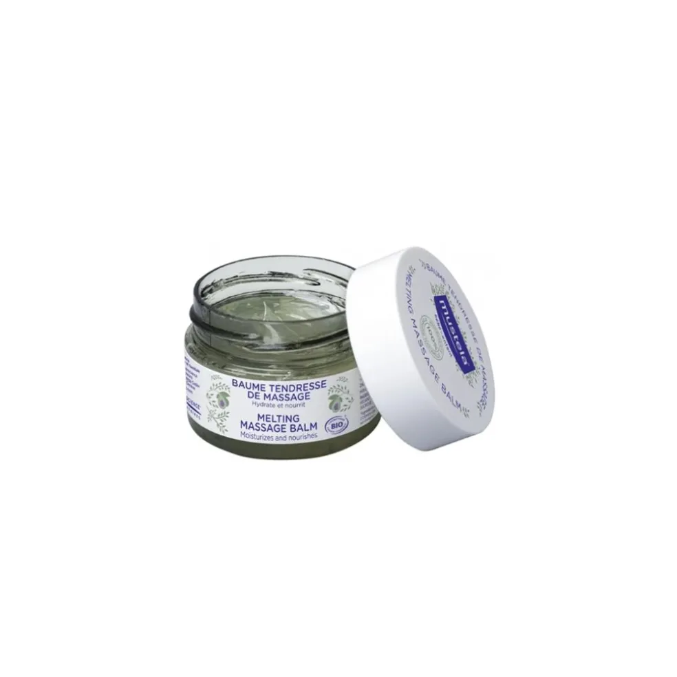 Mustela Melting Massage Balm Organic 90gis an organic avocado oil massage balm that moisturizes and nourishes baby skin.