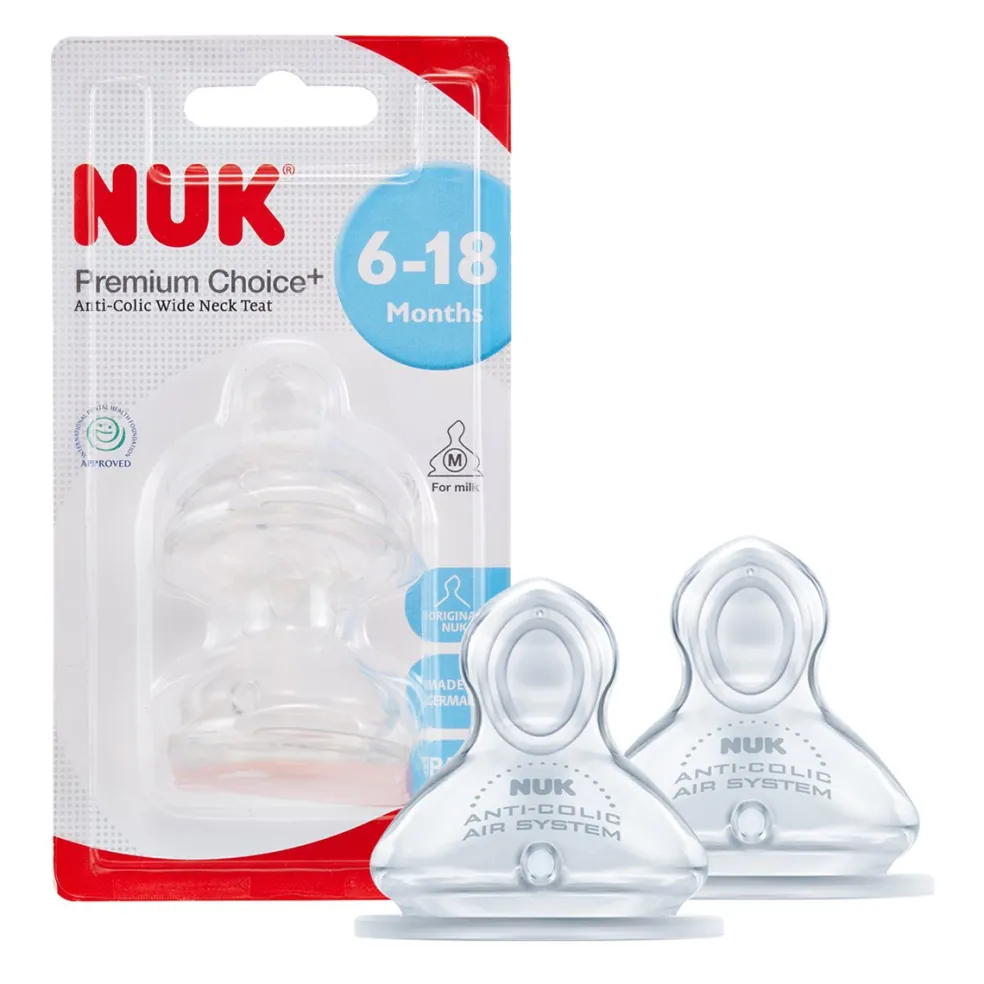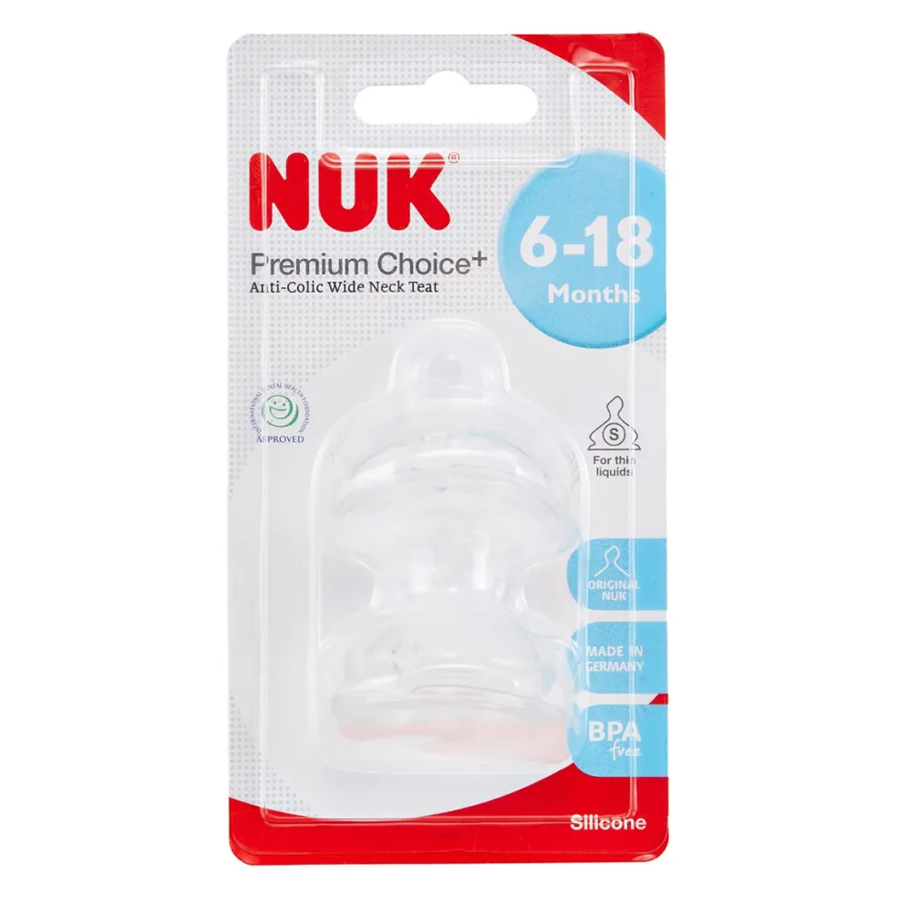 The orthodontic NUK shape, combined with the NUK Premium Choice extra wide lip support, makes it easier to alternate between breast and bottle feeding. The improved Anti Colic Air System minimises infant colic caused by the harmful swallowing of air.Approved by the British Dental Health Foundation.BPA (Bisphenol A) free.