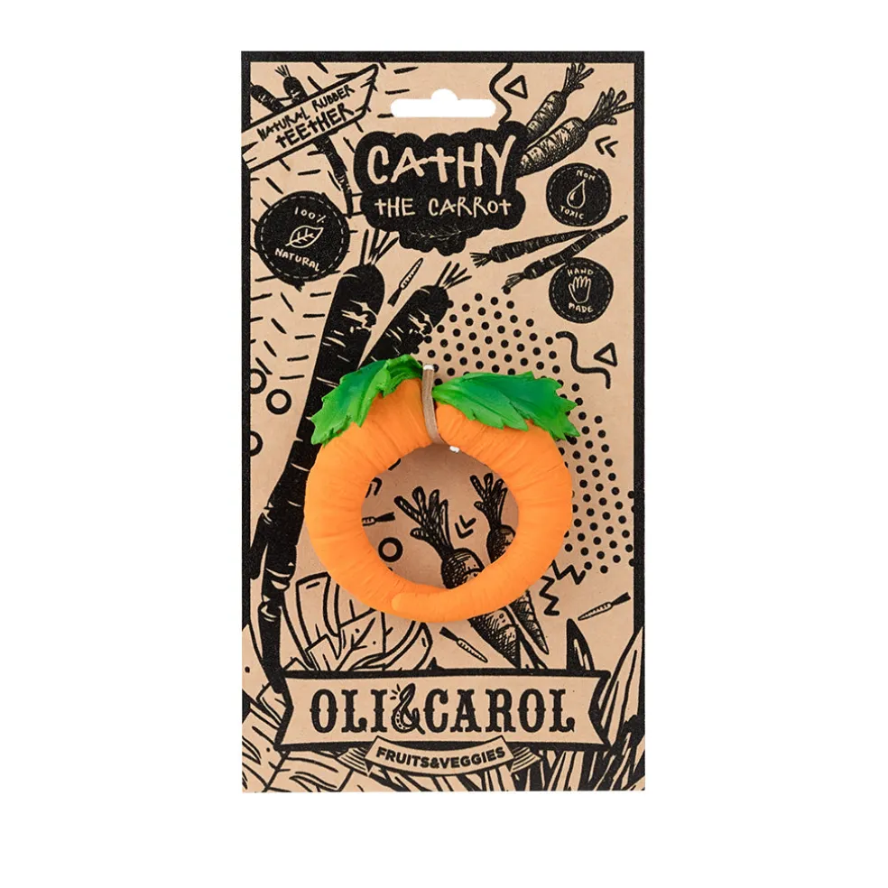 Cathy the Carrot is a veggie-shaped baby teether that will stimulate babies’ senses while soothing little gums. It is a chewable bracelet ready to be placed around babies’ wrist while teething on it all day long. Introduce kids into a healthy lifestyle from a young age! It will become little ones favorite teether, bath toy and sensory play toy.