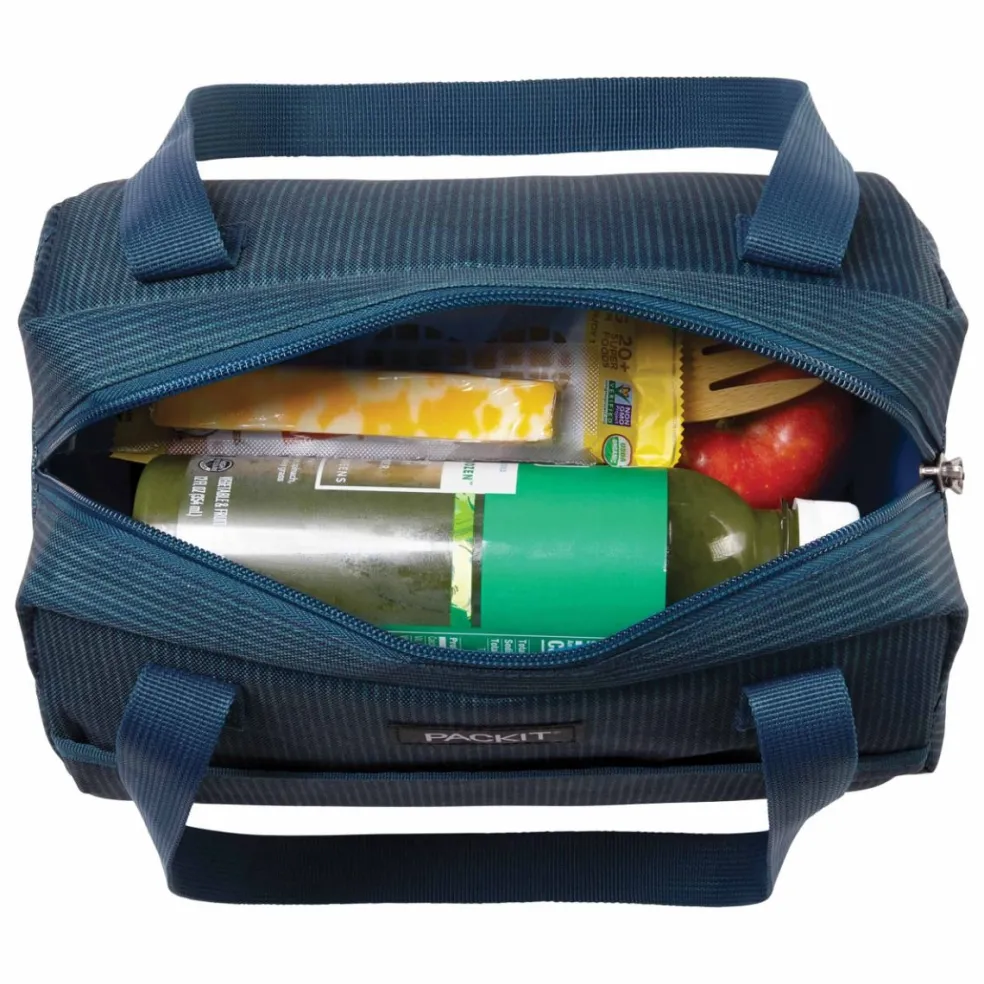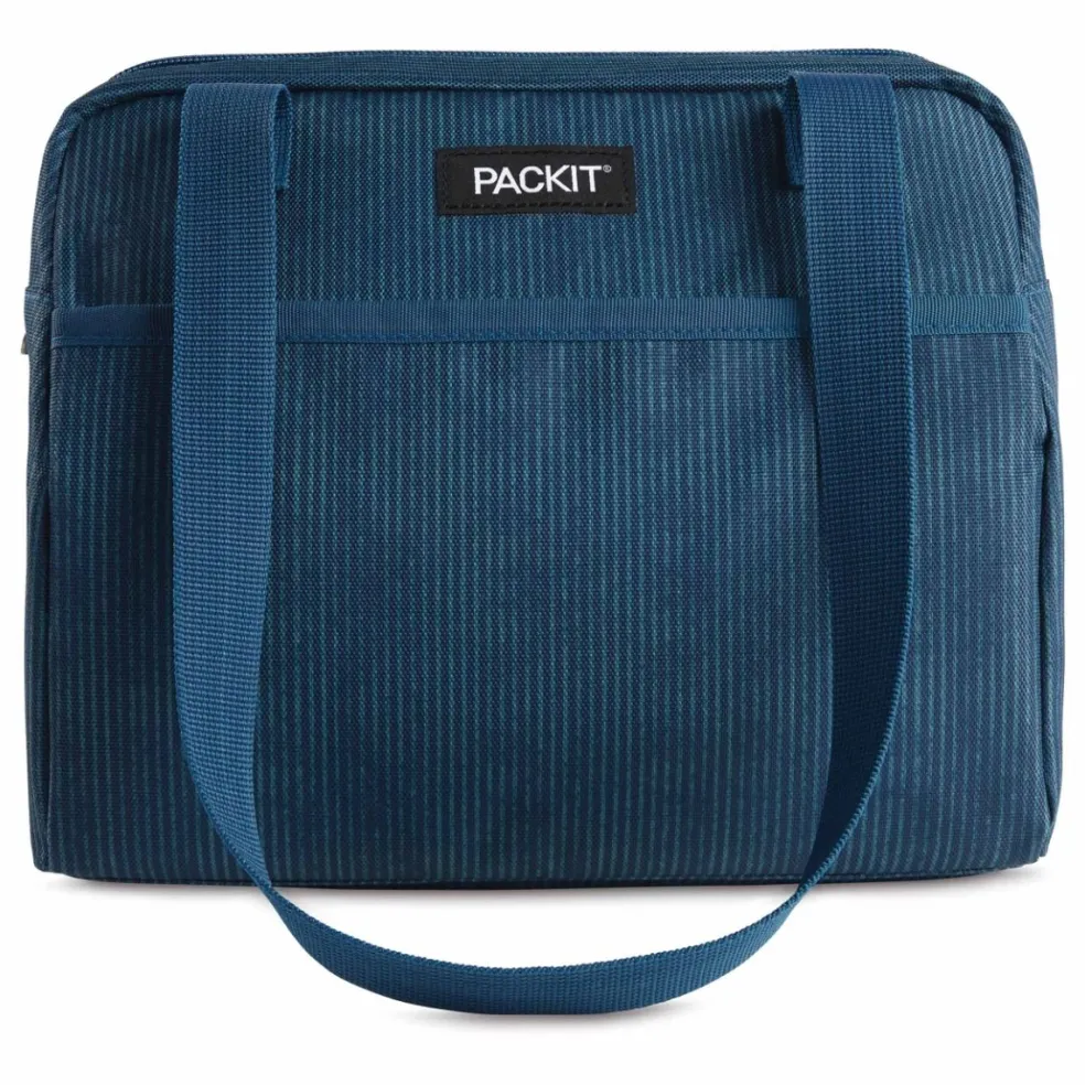 Packit Freezable Hampton Lunch Bagis a reusable insulated lunch bag designed with PackIt’s patented EcoFreeze⢠technology: freezable gel built into the walls of the lunch bag. The smart design eliminates the need for separate ice packs or gel packs. The Bag That’s an Ice Packā¢: it’s freezable, it’s reusable, and it actually cools. Style meets function with our shoulder tote cooler. It features a wide rectangular base that can fit our new Mod Lunch Bento⢠or Mod Snack Bento⢠containers perfectly. The shoulder straps make this bag easy to carry making it great for work, commuting, or school.