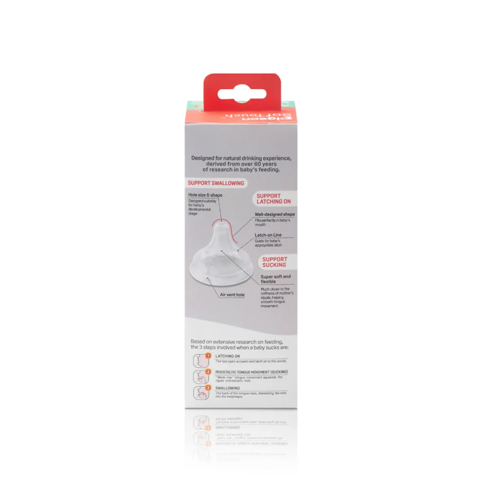 Backed by over 60 years of research into baby’s natural sucking behaviour, the new upgraded Pigeon SofTouch Nursing Bottles launched in 2022 come with research-based latch-on line for appropriate latching, and even softer nipple that is closest to mother’s breast.