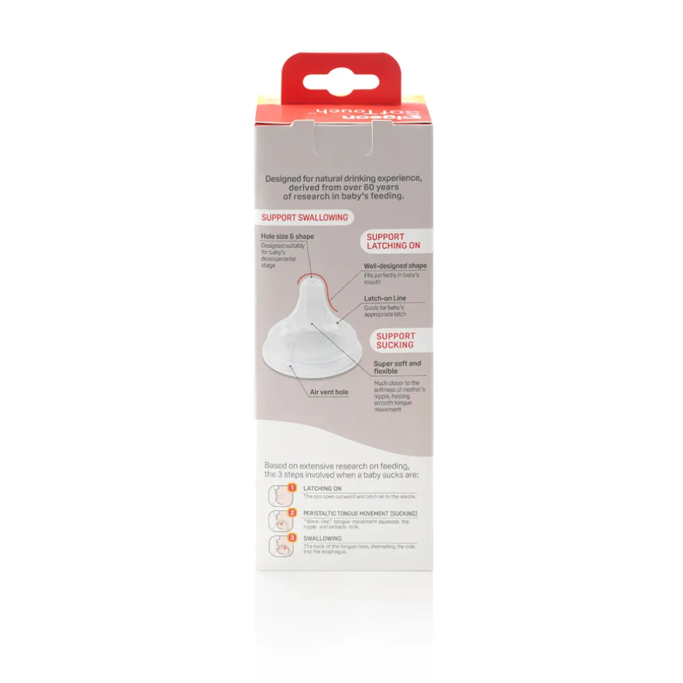 Backed by over 60 years of research into baby’s natural sucking behaviour, the new upgraded Pigeon SofTouch Nursing Bottles launched in 2022 come with research-based latch-on line for appropriate latching, and even softer nipple that is closest to mother’s breast.