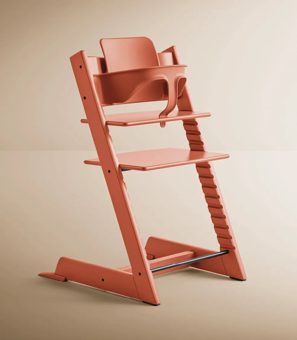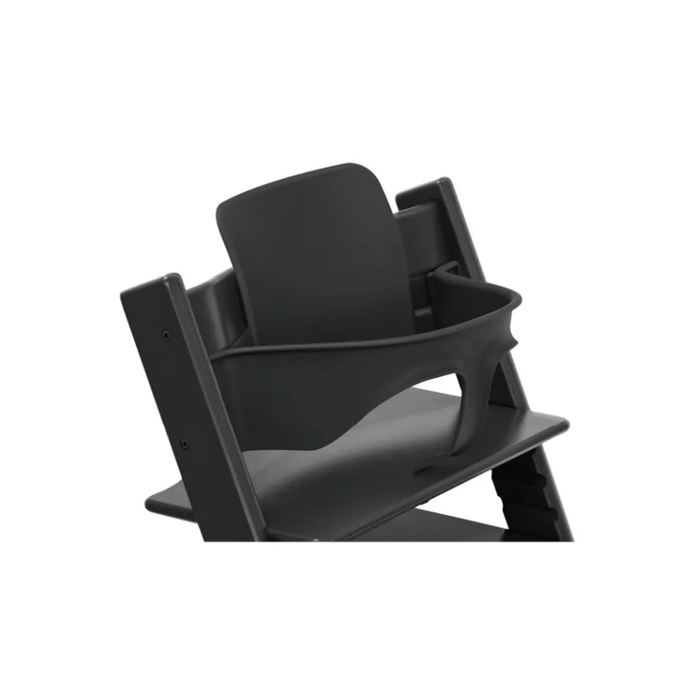 - Even your youngest child can join the family at the table with the Tripp Trapp® Baby Set². It gives your child freedom of movement and helps teach them the important skill of sitting. When your child can confidently climb in and out of their chair on their own, you can remove the Baby Set. This gives them greater freedom of movement and more independence.