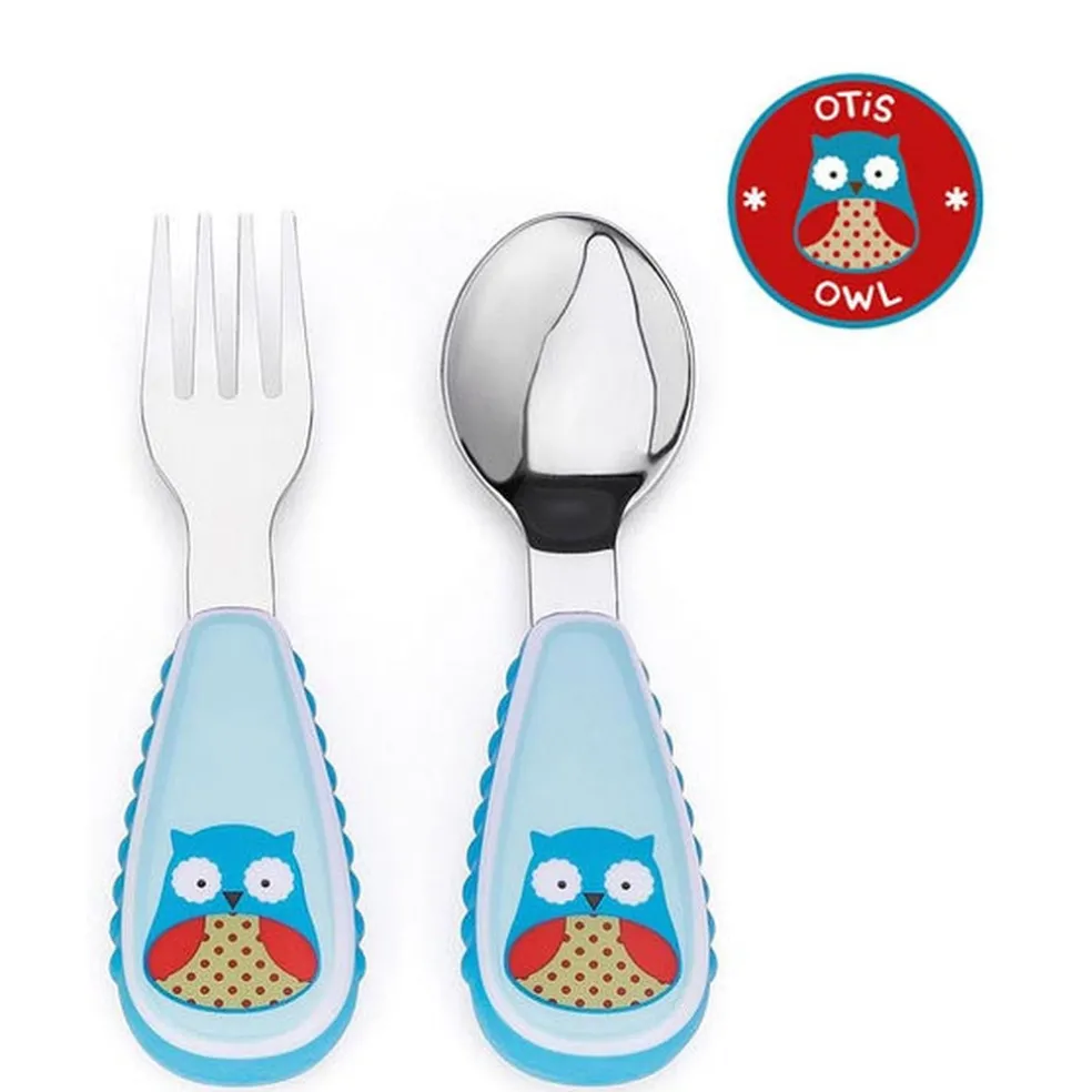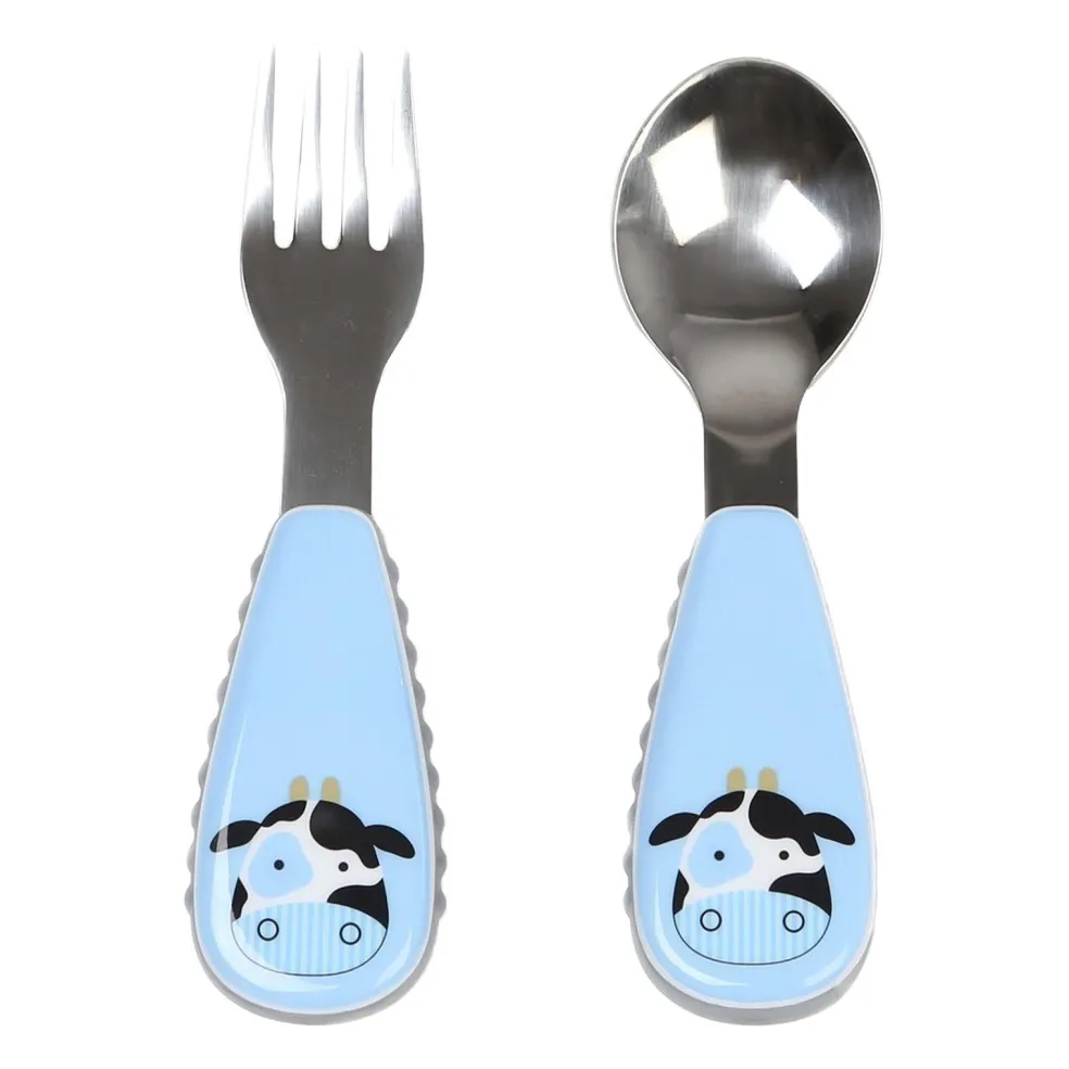 This adorable skiphop fork & spoon has soft side grips so it’s easy for little ones to hold. Stainless steel heads make the utensils feel very grown up for little ones!