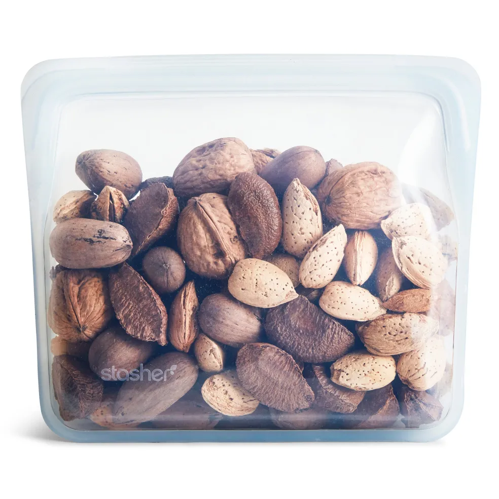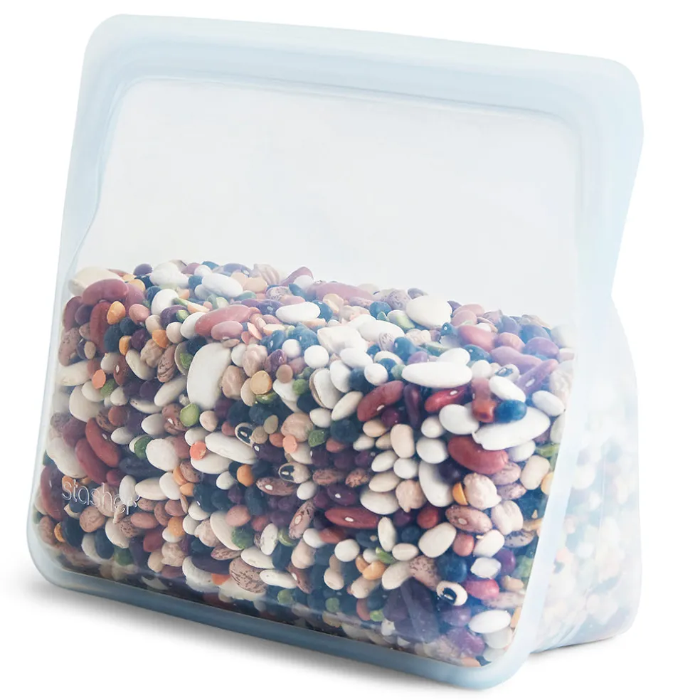The most upstanding citizen in the Stasher lineup, making life better everywhere it goes. Perfect for bulk shoppers, coffee connoisseurs, marinade masters, kitchen drawer pack-rats, and Instant Pot enthusiasts. Keep food fresh at home, slosh-proof your soups, or protect your check-in luggage from makeup and shampoo.