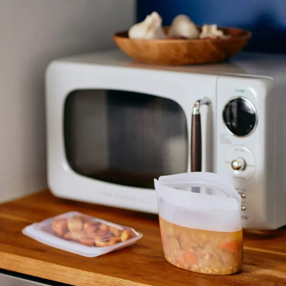 Stasher bowls are easy to pack, safe to heat, and simple to clean.