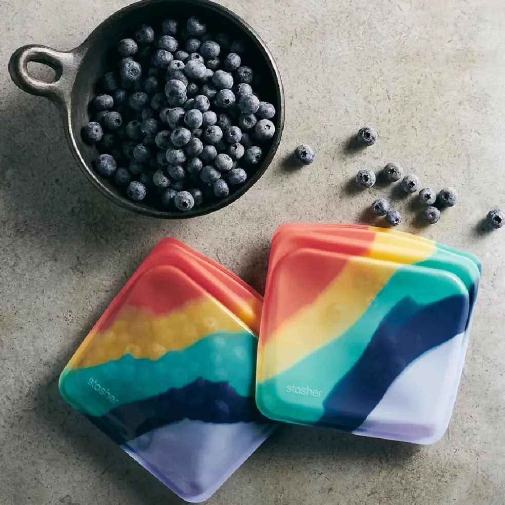 Elevate your food storage game with the iconic Sandwich Stasher Bag. Perfect for lunches, snacks, travel organization, and more, this versatile bag is a must-have. Crafted from platinum food-grade silicone, it ensures no harmful chemicals come in contact with your food and can even be used for freezing leftovers or sous vide cooking. With a generous capacity of up to 28 fl ounces, it’s a reliable and reusable essential for both your kitchen and on-the-go lifestyle. Plus, it’s waterproof and dishwasher safe. Embrace sustainability without compromising convenience with the Stasher Food Bag.