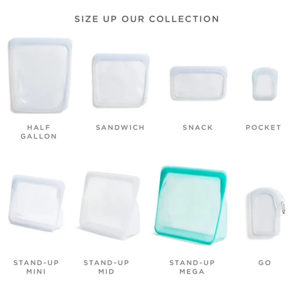 Inspired by our best selling mid size, but with more to love and more to hold. If you’re looking for serious storage, the Mega Stand-Up holds nearly a gallon of goodness. Designed for true volume shopping and smarter packing, the Mega will keep your melons fresh, your sourdough frozen, your clothes sorted, your tech protected, your dog food wag-worthy, your artichokes steamed, and up to 3 soda cans contained in the cooler. Go ahead — think big!