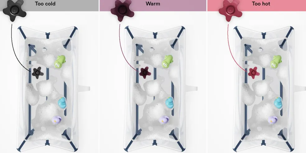 Stokke Heat Sensitive Drain Plug works by turning colors, giving parents a visual cue, letting them know that the water temperature is getting warmer and needs to be checked. Please note that the plug is not a thermometer. Always double-check the water temperature with your hand to ensure that it is the right temperature for your baby´s comfort and safety. If you are in any doubt, use a reliable thermometer for accuracy.