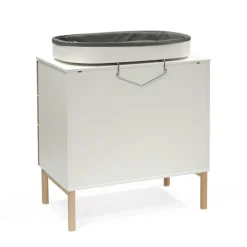 The changer can be safely used on top of the Stokke® Sleepi™ Dresser. Its protective sides and padded mattress offer a safe and comfortable environment for you to change your little one. The height of the Changer encourages eye-contact, and you can choose both sideway or parentfacing position depending on the base unit and room. It comes with a water repellent changing pad with protective sides for baby. This changing pad is soft to baby’s skin, removable and machine-washable.
