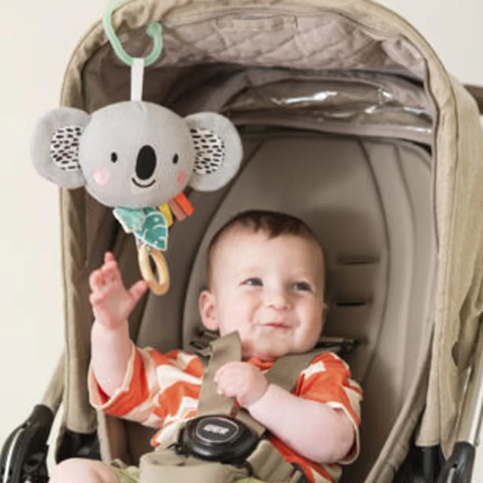- Easy to fold & carry when out & about – The toy is lightweight and easy to fold. Includes XL plastic ring that attaches to buggies, car seats and cots!
