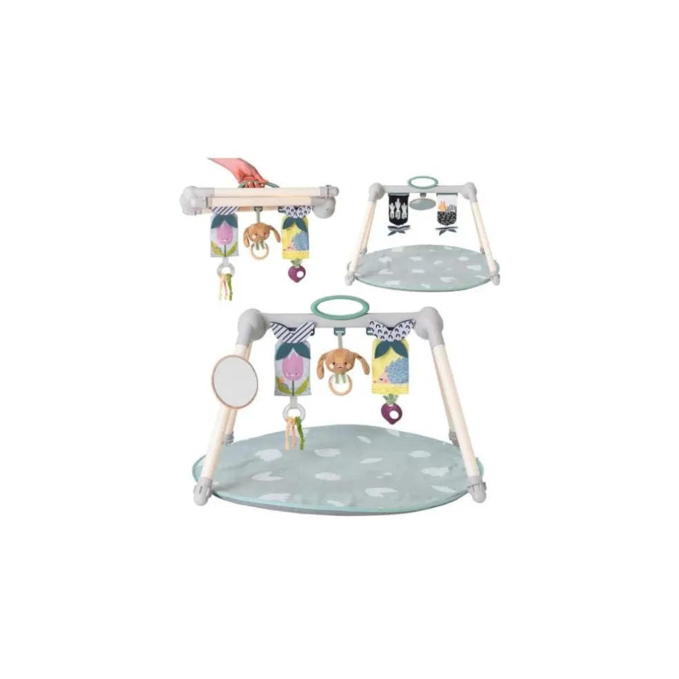 - Stylish sturdy take along baby gym with foldable legs and a padded playmat, easy to fold and carry when out and about.